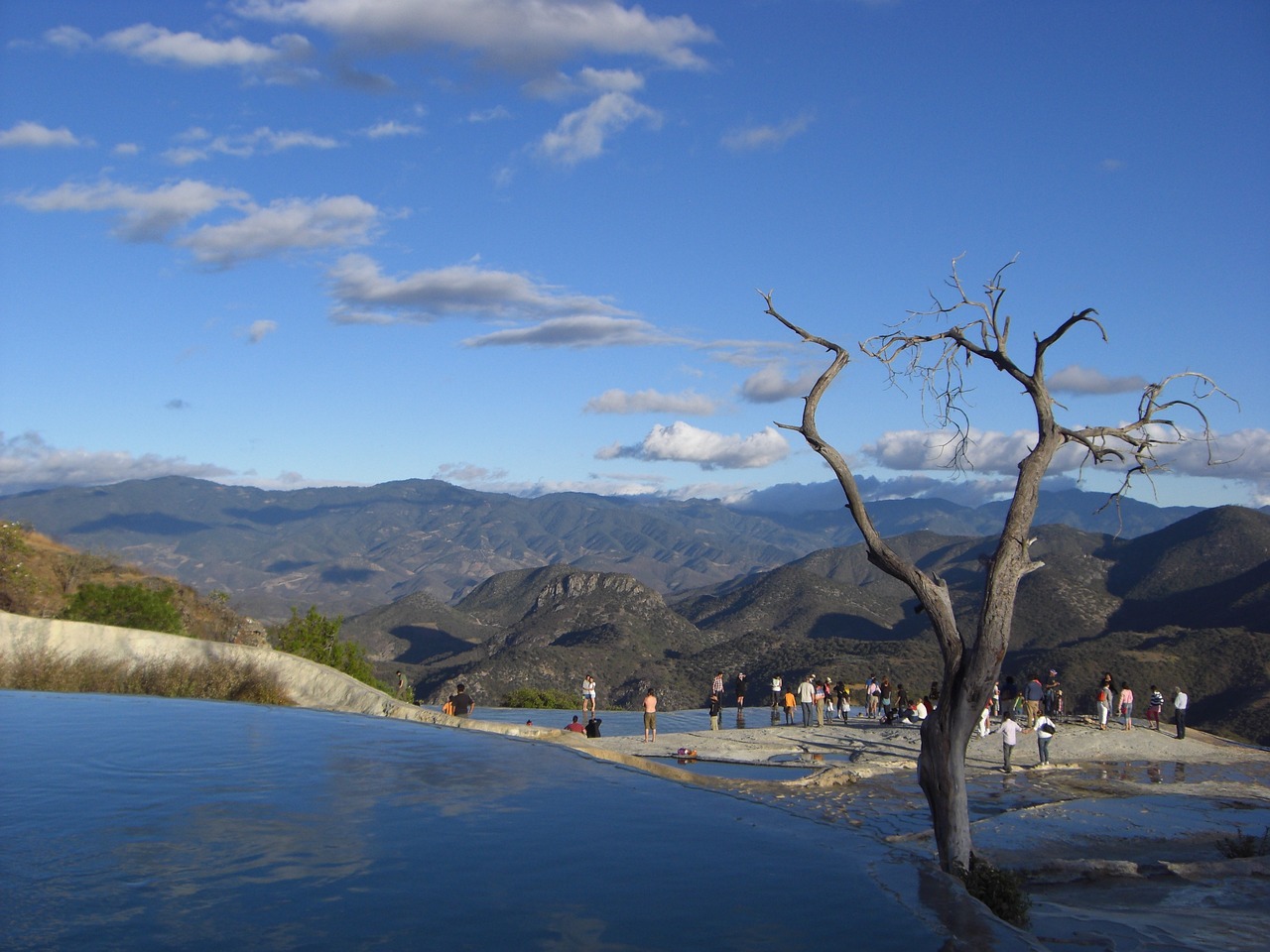 2. 이에르베 엘 아구아(Hierve el Agua): 석화 폭포와 미네랄이 풍부한 샘이 초현실적인 풍경을 만들어내는 자연의 경이로운 히에르베 엘 아구아(Hierve el Auga)를 방문해 보세요. 주변 산의 숨막히는 전경을 감상하면서 따뜻한 샘에서 휴식을 취해보세요.