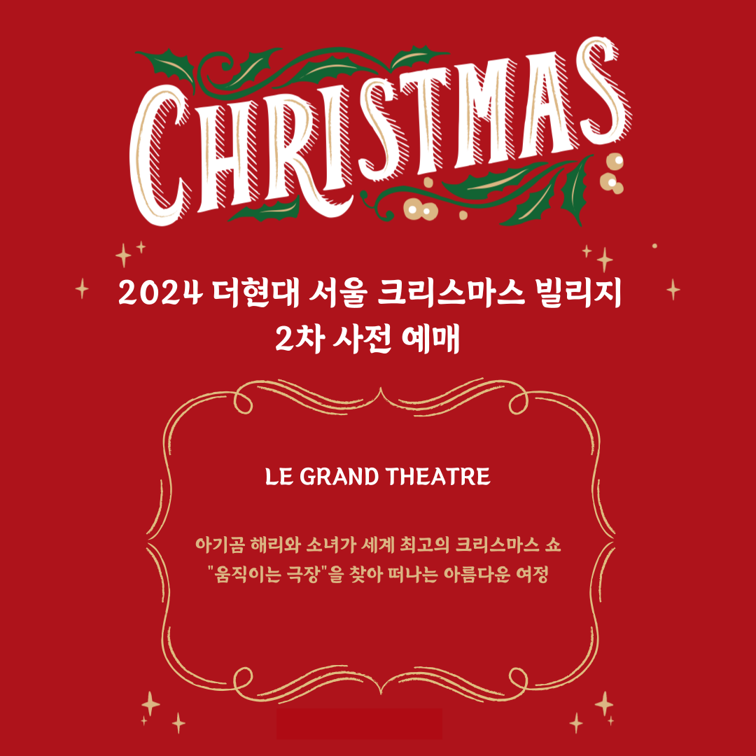 2차 사전예약은 놓치지 말고 꼭 성공하셔서, 아기곰 해리와 소녀가 세계 최고의 크리스마스 쇼 "움직이는 극장"을 찾아 떠나는 아름다운 여정, LE GRAND THEATRE를 더현대 서울 사운즈 포레스트에서 만나보세요.